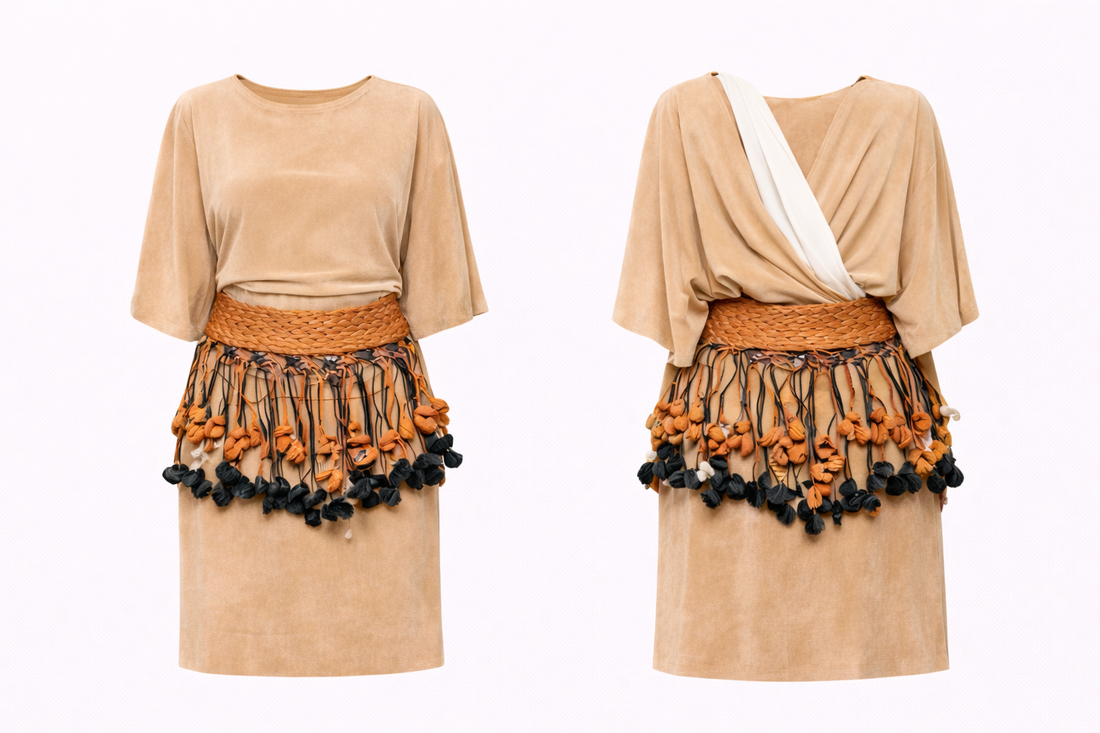 Golden Twist blouse with short pencil skirt or flowy floor lengthened skirt (Kiekie included)