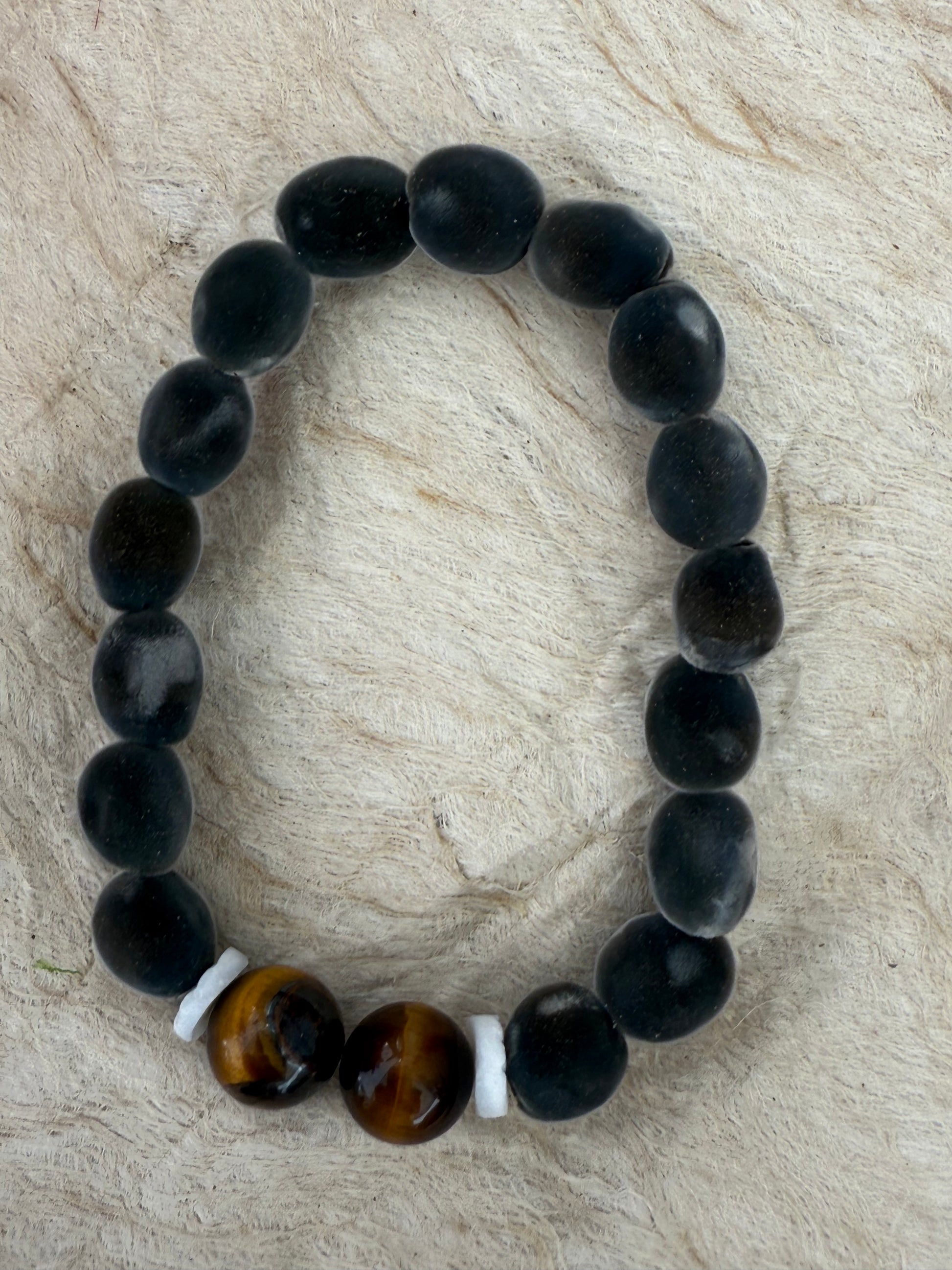Each bracelet is handmade and one of a kind, using natural seeds and materials. No two are exactly the same — just like families.