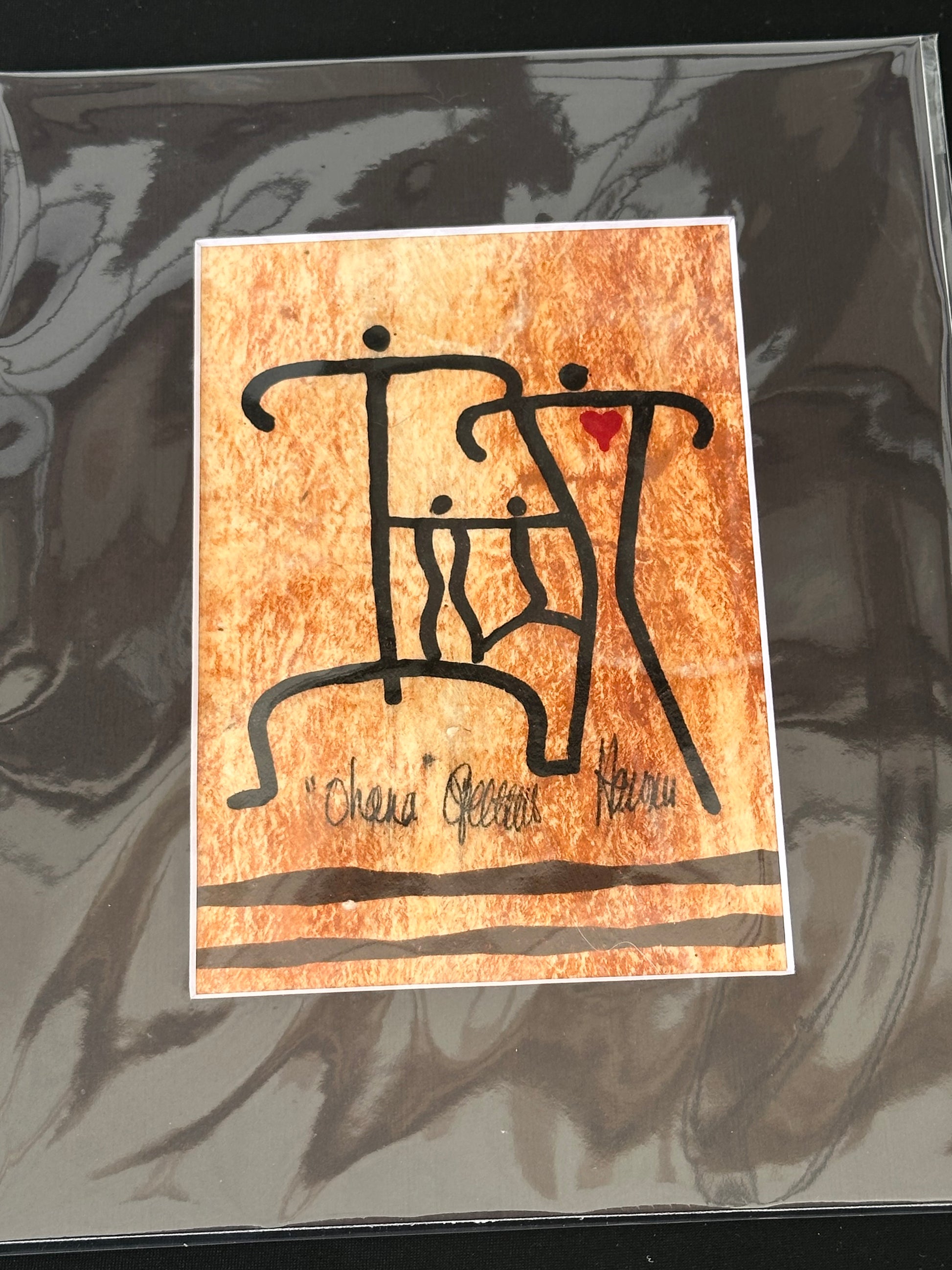 The ʻOhana series captures the heart of Polynesian life — family. In Hawaiian, ʻohana means more than just family by blood; it represents the circle of love, connection, and support that binds us together. These Tapaglyphs are created on tapa (bark cloth), blending the timeless tradition of Polynesian artisanship with modern storytelling through symbolic petroglyph-inspired figures.